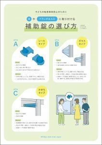 子どもの転落事故を防止するための家庭訪問マニュアルと転落防止対策のための補助錠の選び方のリーフレットを作成。