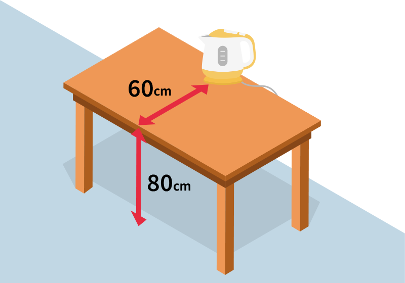 また、コードに足を引っ掛けて転倒させる事故も多発していますので、80cm以上の高い位置にあるコンセントにつなぎましょう。