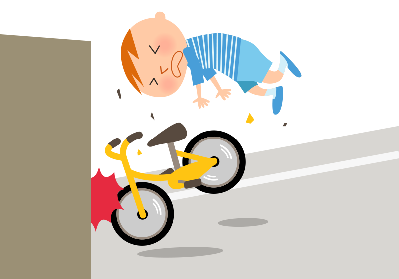 子どもが自転車で壁に激突し、投げ出されて頭部外傷