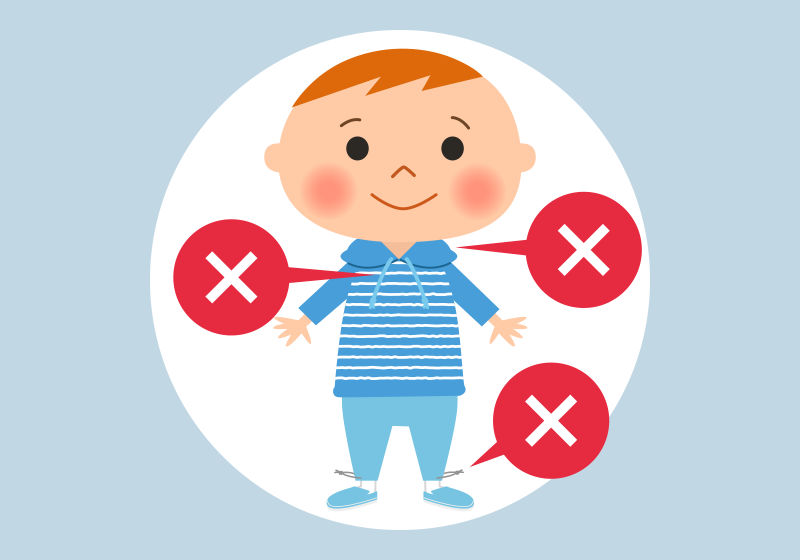 子ども服には、フードやひもなどが付いていないものを選びましょう。